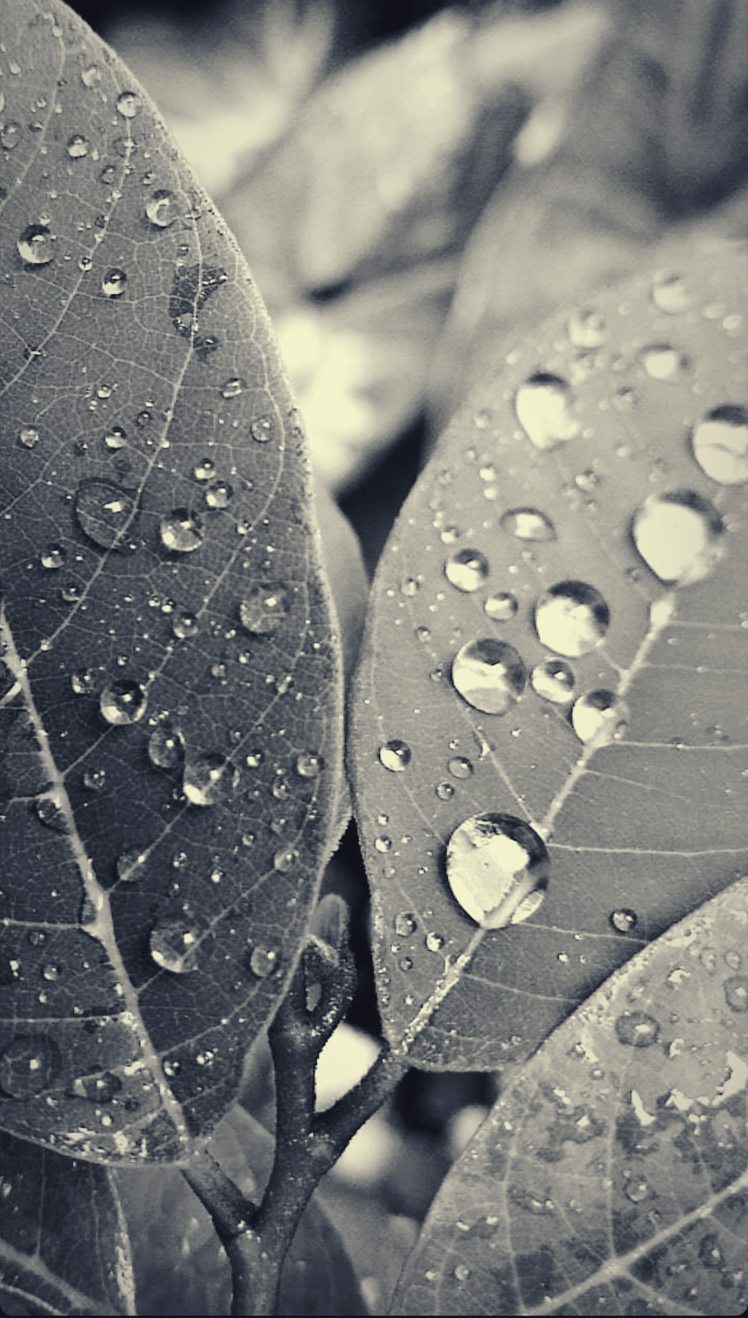 Foto preto e branco – planta- pingos de chuva – Blog- Cleia fotografia